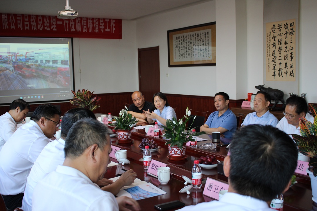 2022年7月7日,山東鋼鐵集團(tuán)總經(jīng)理、黨委副書記呂銘,山鋼股份營銷總公司黨委書記、總經(jīng)理郭偉達(dá)一行到泰安信橋考察調(diào)研,集團(tuán)董事長徐立波、總經(jīng)理徐宏、泰安市鋼貿(mào)商會(huì)王炳坤以及其他相關(guān)公司負(fù)責(zé)人等熱情陪同。