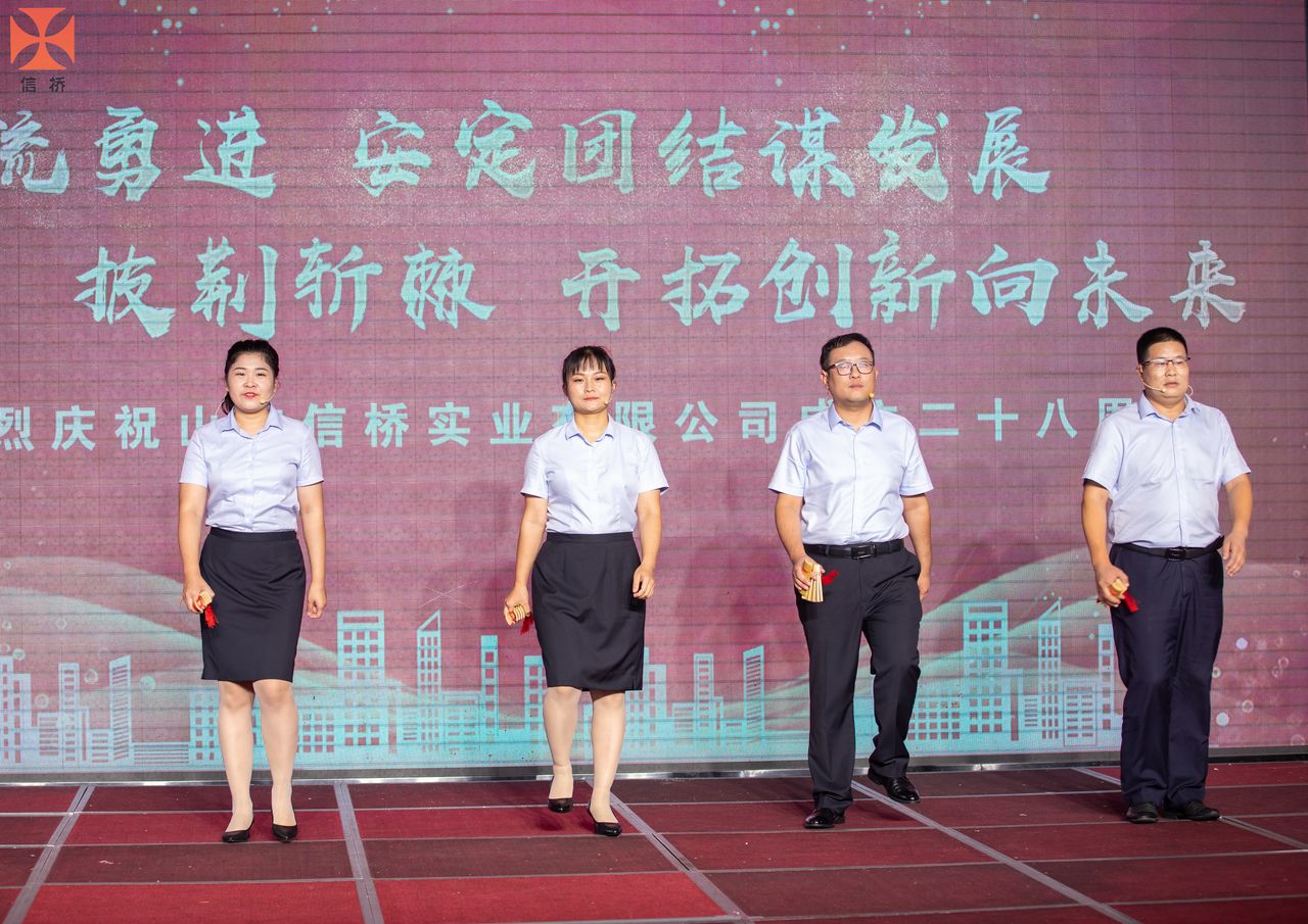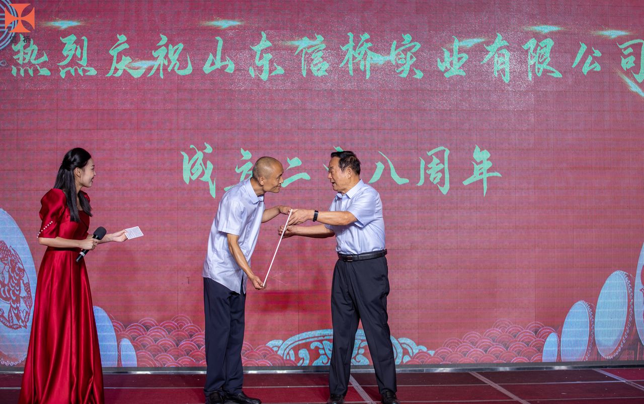 歲月如歌,風霜如畫,二十八年彈指一揮間,山東信橋?qū)崢I(yè)有限公司(以下簡稱山東信橋)迎來了二十八周歲的生日。二十八年來,信橋人在激烈的市場競爭中奮力拼搏、砥礪前行,接受了市場風風雨雨的洗禮,取得了累累碩果。為了慶祝這一特殊的日子,2022年8月8日,以“激流勇進,安定團結(jié)謀發(fā)展 披荊斬棘,開拓創(chuàng)新向未來”為主題的山東信橋二十八周年慶典活動在寶盛大酒店舉行。